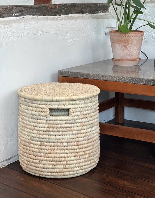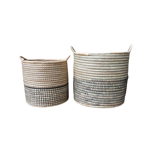 Tilføj en autentisk, håndlavet detalje til dit hjem med vores bananbladkurve, fremstillet i Zimbabwe, Iran og Senegal. Disse kurve er skabt af dygtige håndværkere, der bruger traditionelle teknikker til at væve de robuste bananblade til smukke, funktionelle opbevaringsløsninger. Hver kurv fortæller en historie om håndværk, kultur og natur, hvilket gør dem perfekte som plantekurve, opbevaringskurve eller som dekorative kurve i ethvert rum.
