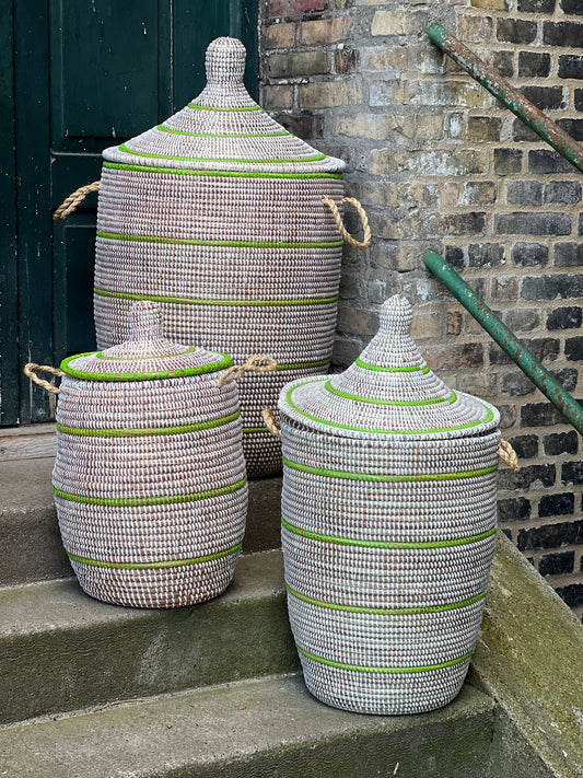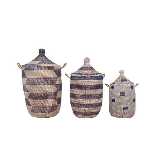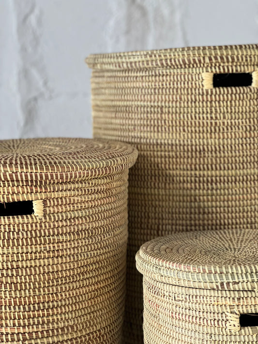 Kurve kan have mange formål. Skab en afslappet og naturlig atmosfære med vores søgræskurve. Vores sægræskurve bliver håndflettet i et kvindekollektiv i Senegal. Søgræs er et fleksibelt og slidstærkt materiale, der giver hver kurv et unikt og rustikt udtryk. Brug dem som opbevaringsløsninger, plantekurve eller dekorative elementer, der tilføjer varme og tekstur til dit hjem. Vores søgræskurve er perfekte til at organisere ting i stuen, badeværelset eller børneværelset.