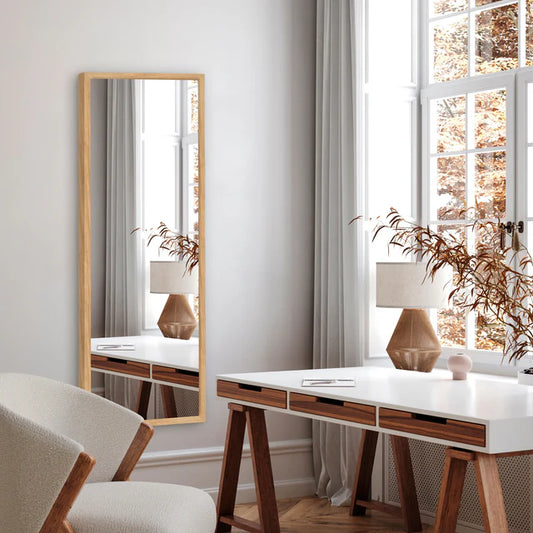 Aflangt spejl med bred egetræsramme