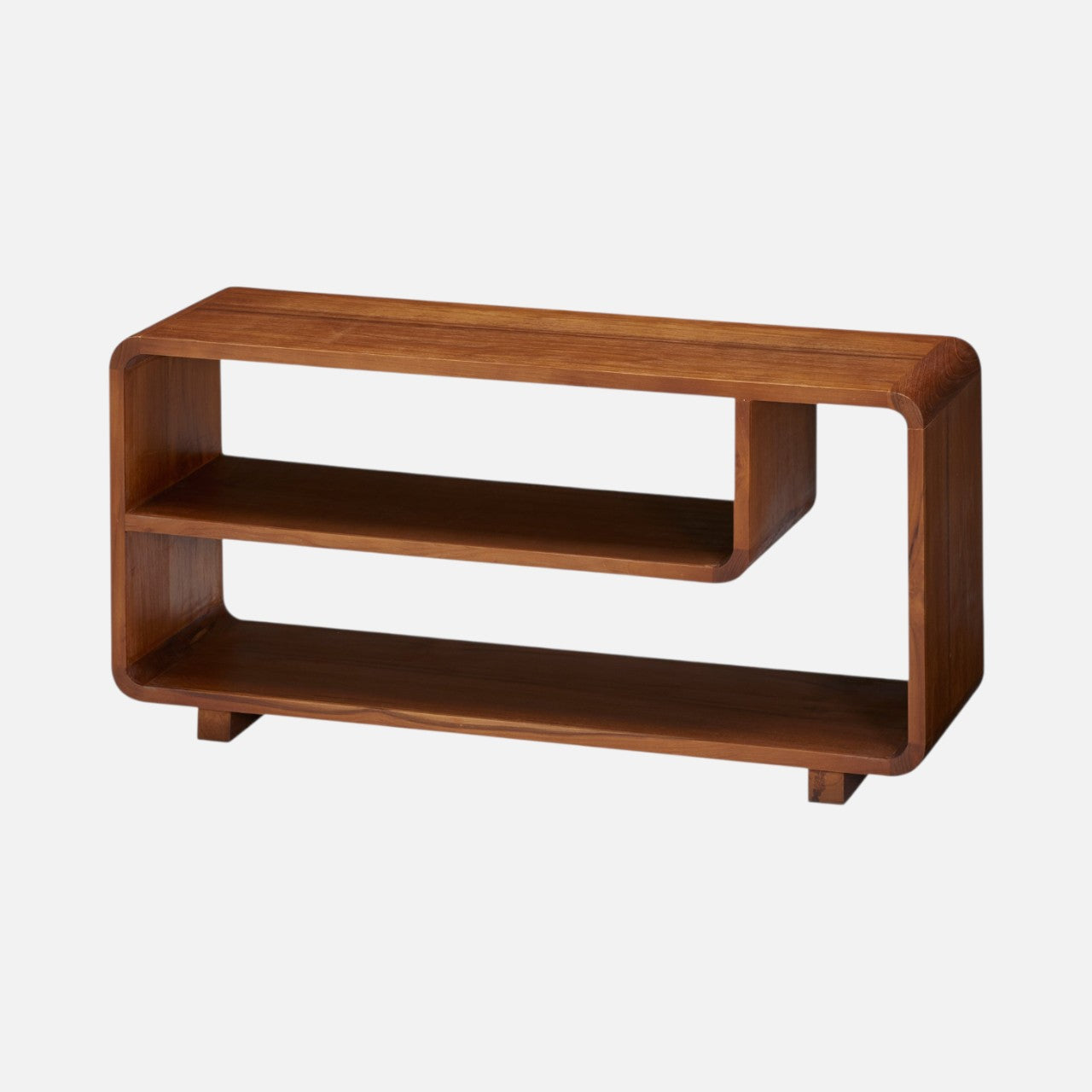 Charmerende sofabord i teaktræ i et elegant design. Bordet har afrundede hjørner der givet det et blødt udtryk. Bordet er smalt og er derfor perfekt egnet til det mindre rum.