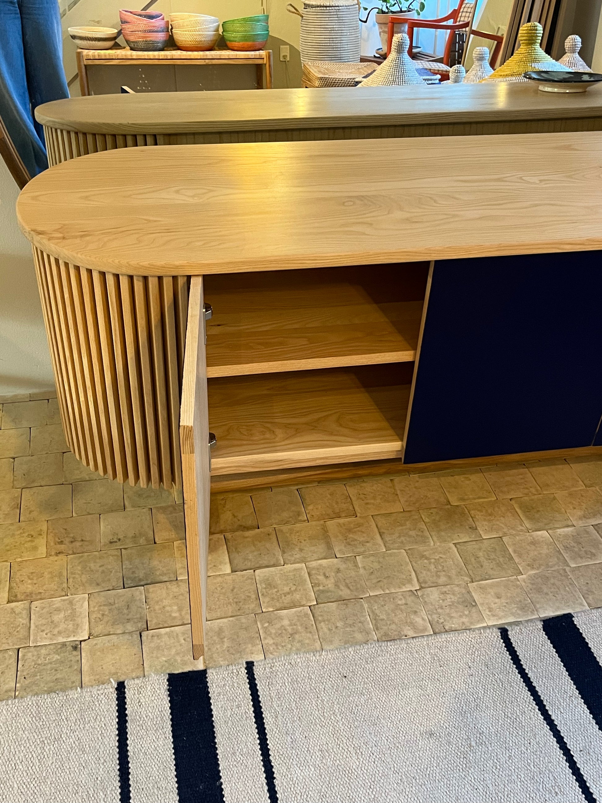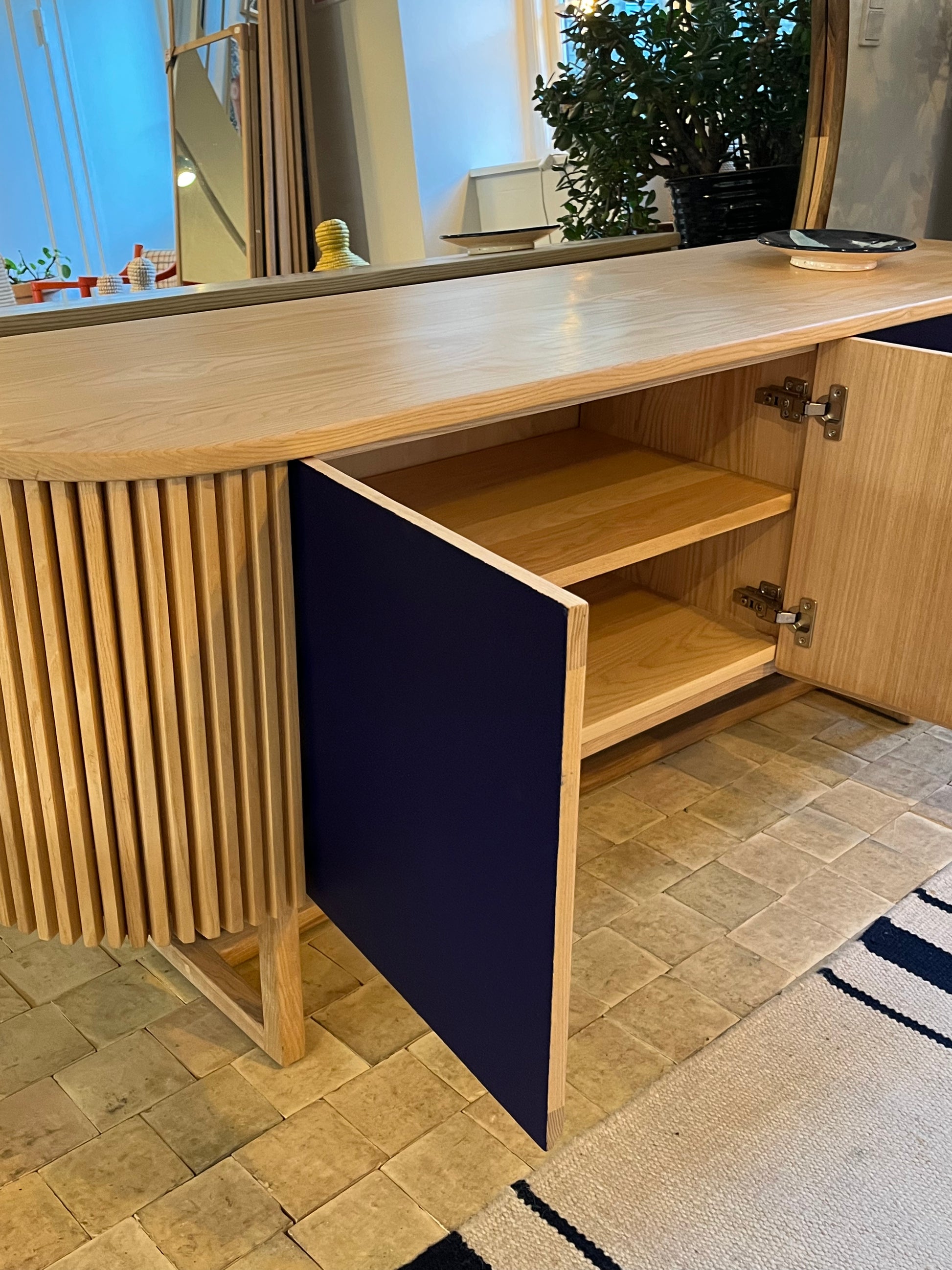 Udstillingsmodel - Skænk i egetræ med blå låger