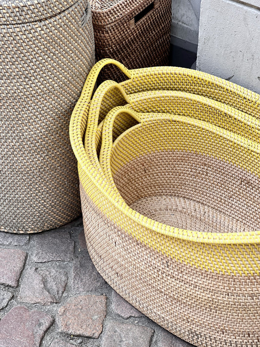 Bambuskurv - Oval to-farvet kurv i gul