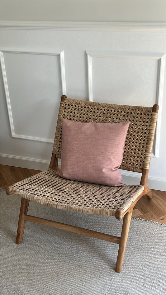 Derudover har vi en lænestol med teaktræ og rattan, som har et let og luftigt design – perfekt til en skandinavisk eller boheme-inspireret indretning.