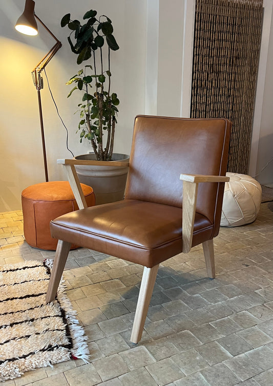 Lænestol - Cognacfarvet læder og egetræ - A005 - By Sol
