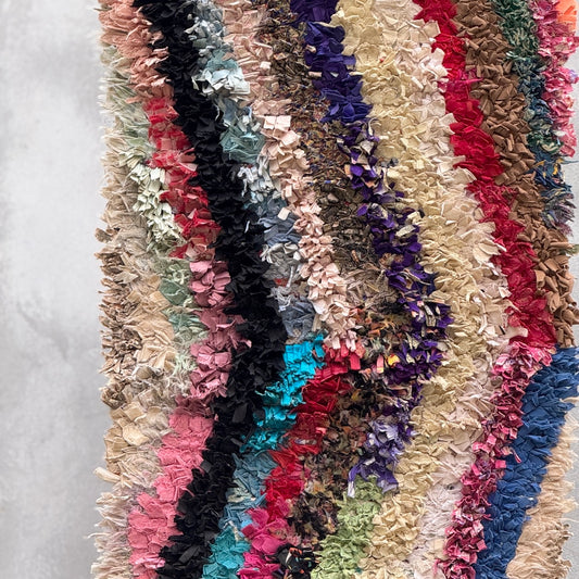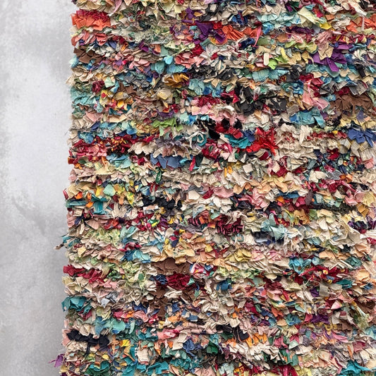 Disse tæpper bliver skabt ud fra en bæredygtig tilgang, hvor berberkvinder genanvender stof fra gamle klæder og tekstiler. Det giver tæpperne et helt særligt udtryk, hvor hver farve, hver stribe og hver detalje fortæller en historie.