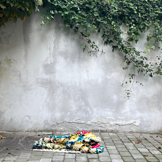 Hvis du ønsker et farverigt og kunstnerisk tæppe, er et Boucheroite tæppe et oplagt valg. Boucheroite tæpper adskiller sig fra de traditionelle Beni Ouarain tæpper ved at være fremstillet af genbrugsmaterialer, såsom bomuld, uld og tekstilrester. Denne bæredygtige tilgang gør, at hvert tæppe er helt unikt i sit mønster og farvesammensætning.