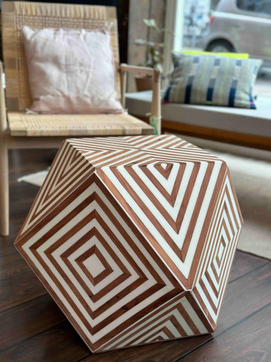 Ivory sekskantet træbord – unikt sidebord med inlay-design
