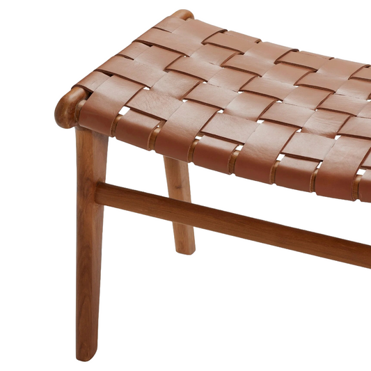 Skammel - Teak/cognacfarvet læder - By Sol - P014