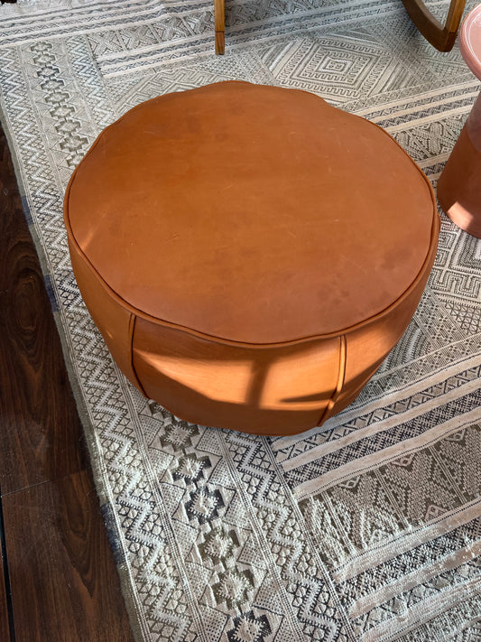 Udstillingsmodel - Læderpuf - Cognacfarvet kernelæder