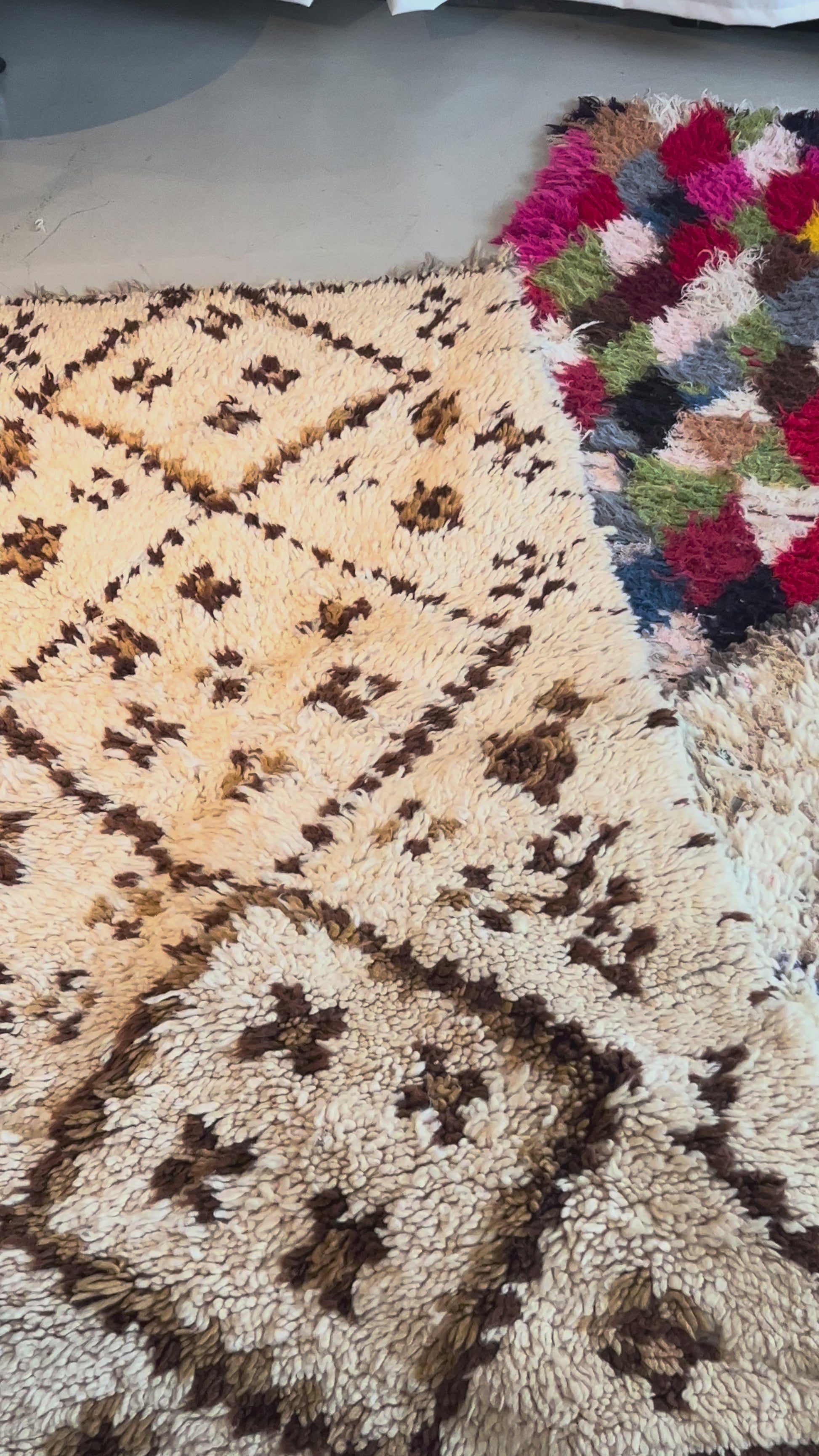 Vores marokkanske tæpper er håndknyttede, hvorfor der kan forekomme små variationer i både mål og tekstur. Derfor er hvert enkelt marokkanske tæppe unikt. Vi håber at I vil elske den historie, der er i materialet og håndarbejdet, lige så meget som vi selv gør ❤️