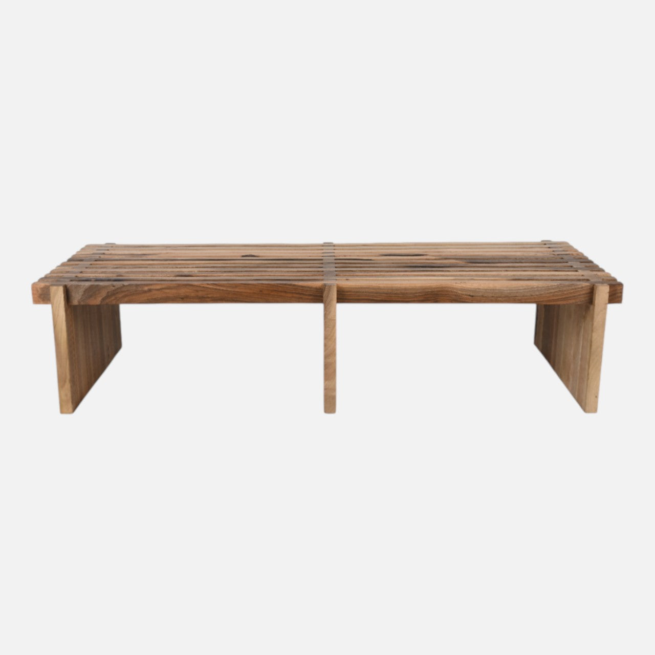 Bænk i massiv olieret valnøddetræ. Bænken er inspireret af de klassiske trallebænke, men med et tvist idet den lavet valnøddetræ.